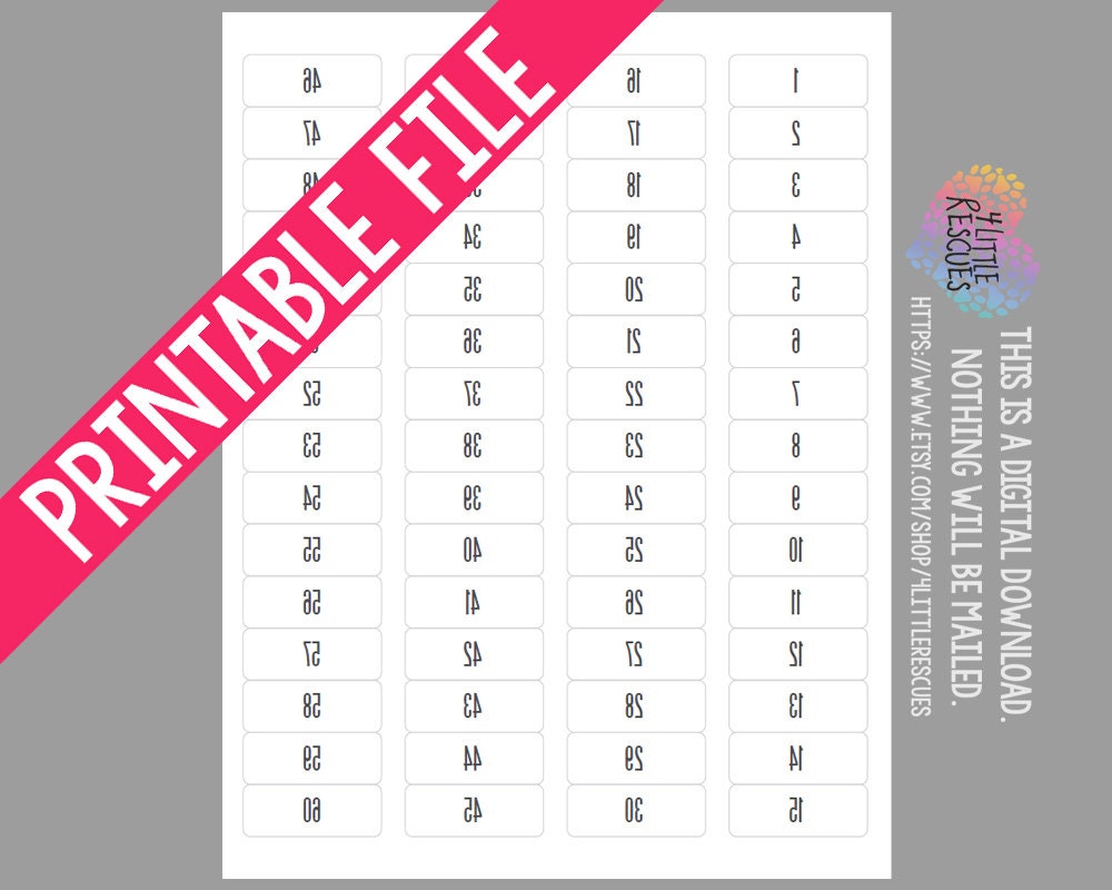Printable: Forward AND Reverse/Mirror Image Labels Tags Numbers 1-540 | Leggings Stickers | Live Facebook Sales | 60 per page | Avery 5155