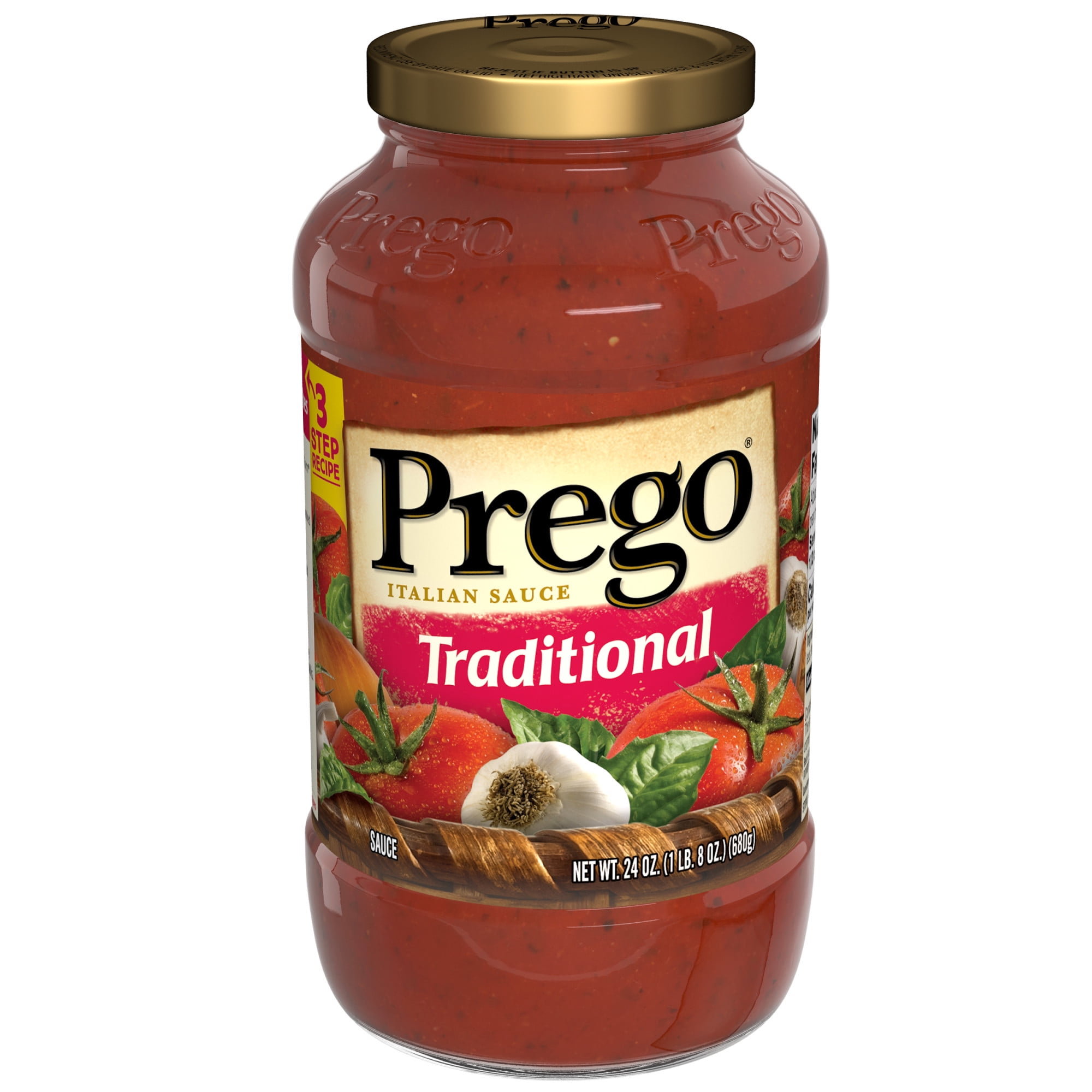 Traditional Italian Sauce - Prego® Pasta Sauces In Prego® Traditional, vine-ripened tomatoes provide the base for the perfect balance of sweet tomato taste and savory Italian seasonings. A true classic! Where to Buy. Nutrition Facts & Ingredients. Nutrition Facts. About 5 Servings Per Container. Serving size. 1/2 Cup (120mL) Amount per serving.