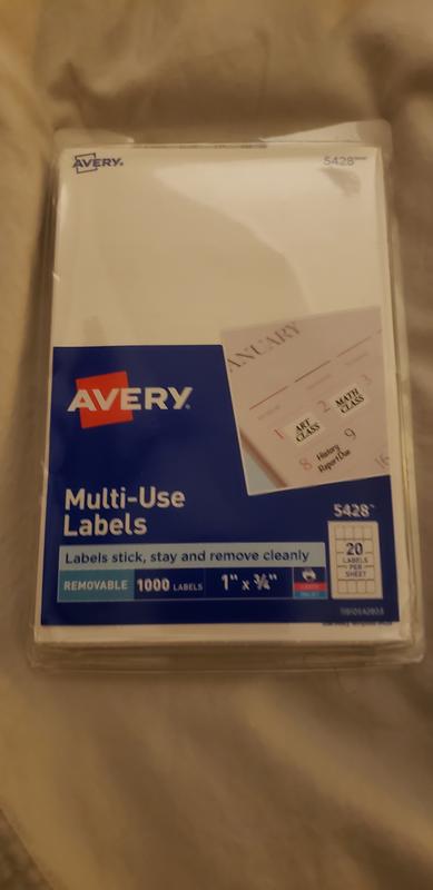 Avery 5428 Removable Multiuse Labels - Office Depot Avery® Removable Inkjet/Laser Multipurpose Labels, 5428, 3/4" x 1", White, Pack Of 1,000 Item #112623 4.7 (35) 1 / 1 Description Specs Eco Conscious Make a statement with these Removable Print or Write Labels. Their size is easy to spot for convenient labeling of boxes, envelopes, packages and more and you can easily remove them later.