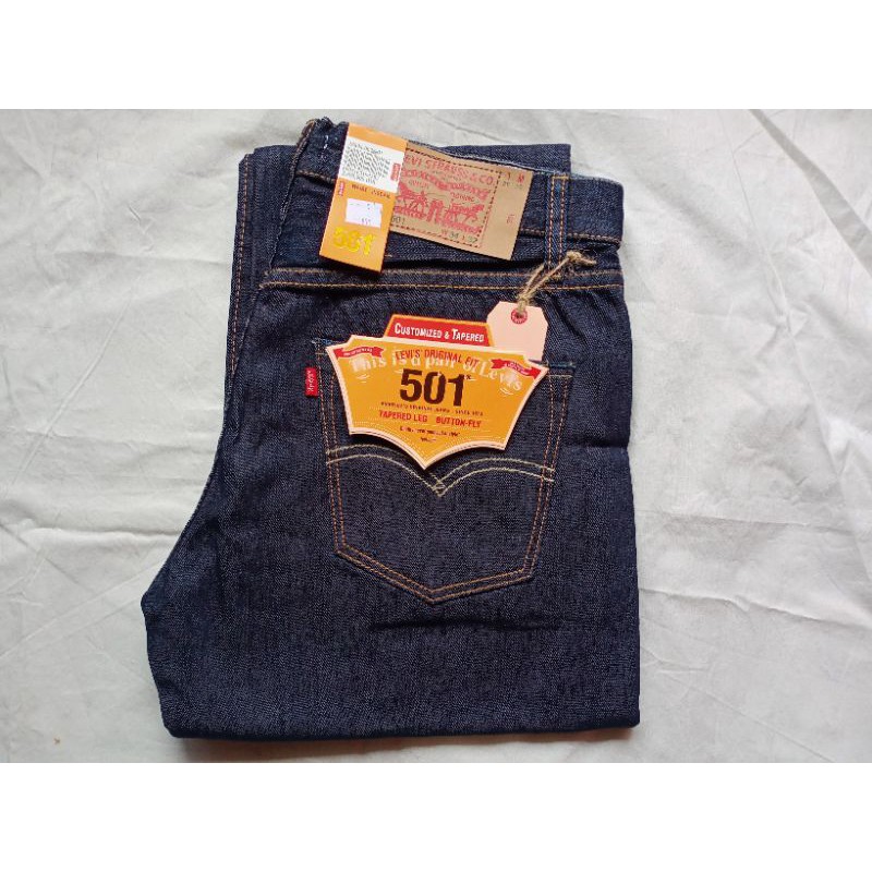 How To Determine Production Date of Vintage Levi's 501 Jeans - Rope Dye 2) Inspect the red tab. If there's a Big E on it, you're well on your way to the big jackpot. If the red tab only has lettering on one side (the one facing the front) the jeans are pre-1955. Still, if it's a small e red tab has your find might still be worth buying. The iconic Levi's red tab with a Big E.