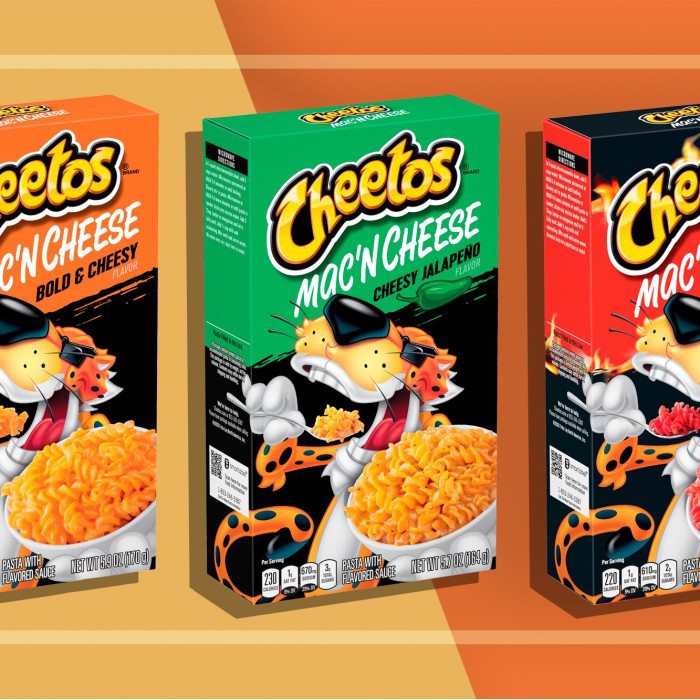 CHEETOS® Mac 'n Cheese FLAMIN' HOT Description Introducing new Flamin' Hot ® Cheetos ® Mac 'n Cheese. The hottest thing since, well, Flamin' Hot ® Cheetos ®. This creamy, bold mac with the heat of Flamin' Hot ® Cheetos ® will hit the spot with each and every bite. Try it today, and get in on the cheesy goodness! Also available in a quick-cook cup. Nutrition Facts Ingredients