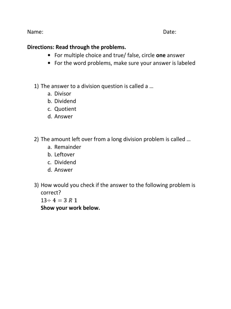 How To Label A Division Problem | Math - ShowMe How To Label A Division Problem by Caitlin Lee - December 4, 2012. Division Basics - Kids Math - Ducksters If the answer to a division problem is not a whole number, the "leftovers" are called the remainder. For example, if you were to try and divide 20 by 3 you ...
